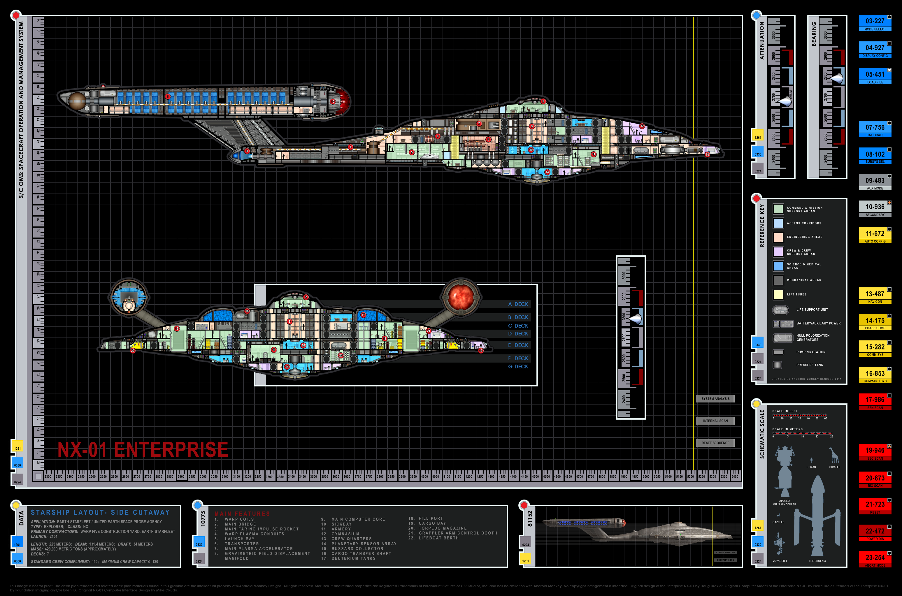 ENTERPRISE NX-01 PRINTABLE SCHEMATICS CLICK ON THE THUMBNAIL TO SEE THE FULL-SIZE VERSION. FOR A MORE DETAILED EXPLANATION OF A SCHEMATIC PLEASE REFER TO THE ONLINE VERSION AVAILABLE AT THE LINKS LISTED ABOVE.