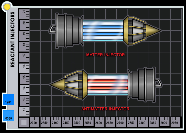amounts. The matter injectors are slaved together with a corresponding anti-matter injector and work